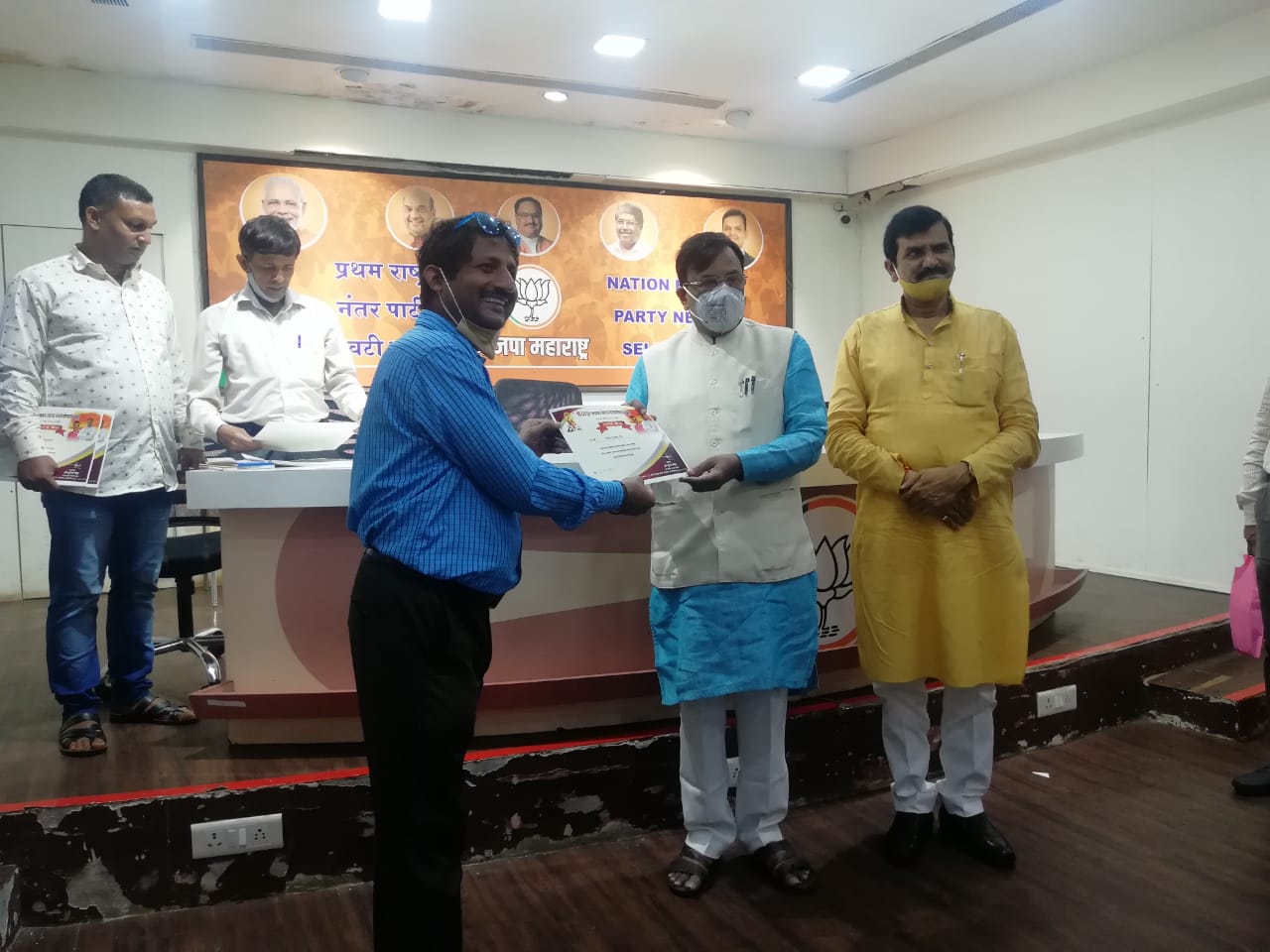 Hon'ble Sudhir S. Mungantivar ( Ex- Minister of Finance ,Forest and plantation, Ex. State Public Accounts Committee Officer) awarded our MD Mr. Santosh Singh at BJP Mumbai Regional Office for his remarkable social works.