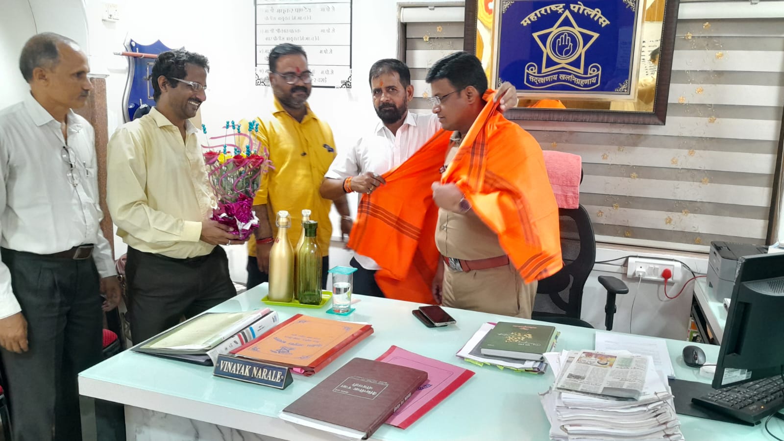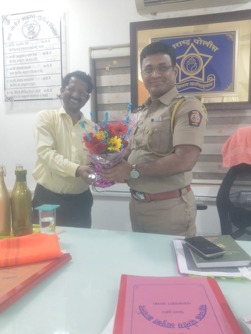 Our MD Santosh Singh respecting with flowers the DCP, Thane Police for his praiseworthy reforms.
